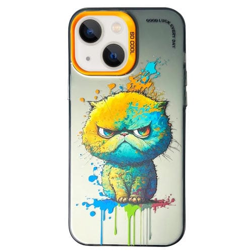 Funda para Teléfono iPhone 15 Serie Plateada Doble Capa con Pintura al Óleo Animal (Gato de Cara Grande)