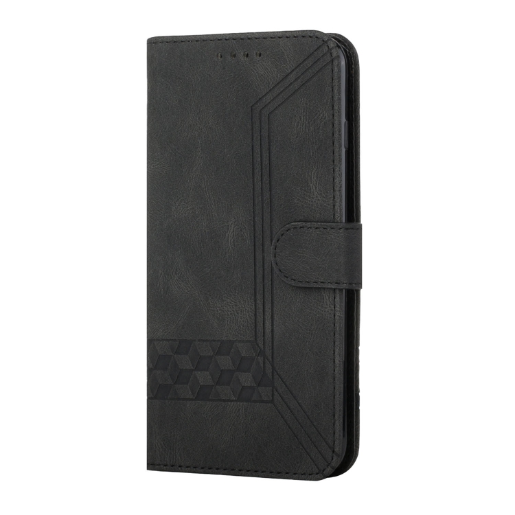 Funda para Teléfono iPhone 15 Cubic Skin Feel Cuero con Tapa (Negro)