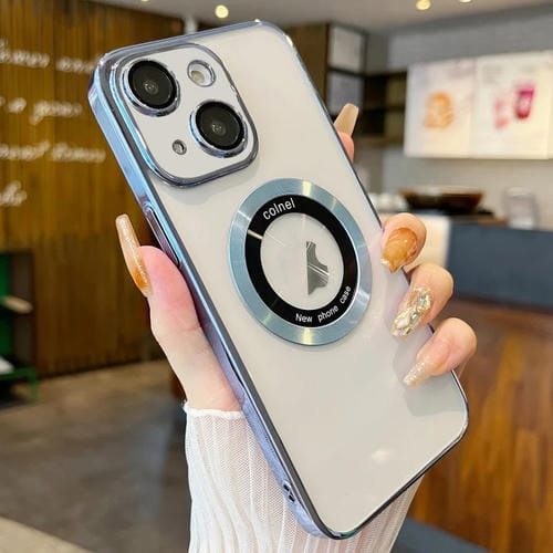 Funda para Teléfono iPhone 15 Magsafe PC Galvanizada Transparente (Azul)