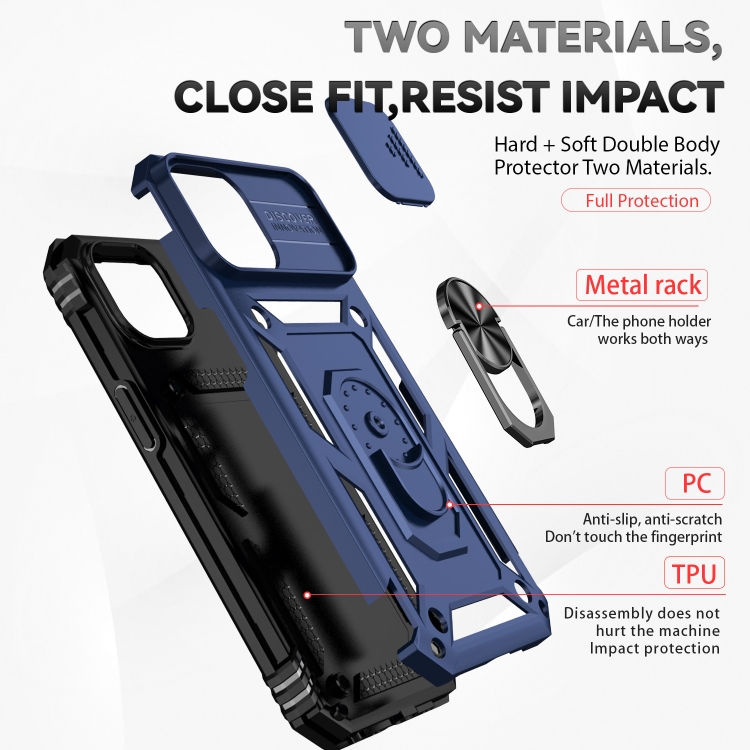 Estuche para Teléfono iPhone 15 Plus con Soporte Deslizante Camshield (Azul)