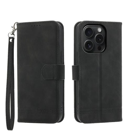Funda para iPhone 15 Pro Dierfeng Dream Line TPU y Cuero PU (Negro)