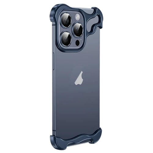 Estuche para Teléfono iPhone 15 Pro Almohadilla de Esquina de Metal sin Marco Película para Lentes (Azul)