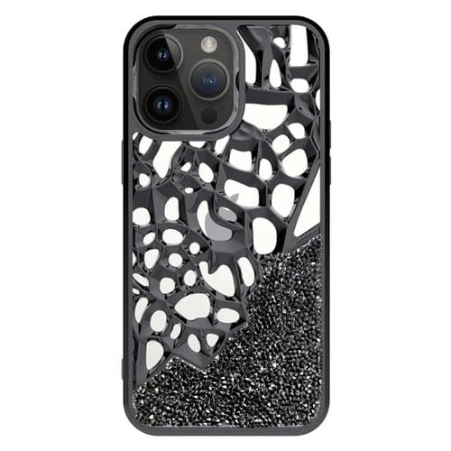 Estuche para teléfono TPU Galvanizado iPhone 15 Pro con Disipación de Calor Hueca Estilo Diamante (Negro)