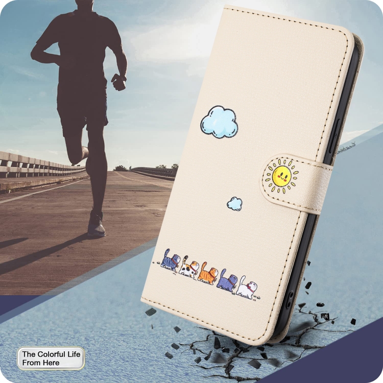 Funda para teléfono iPhone 15 Pro Max Cuero Gatos dibujos animados (Beige Blanco)