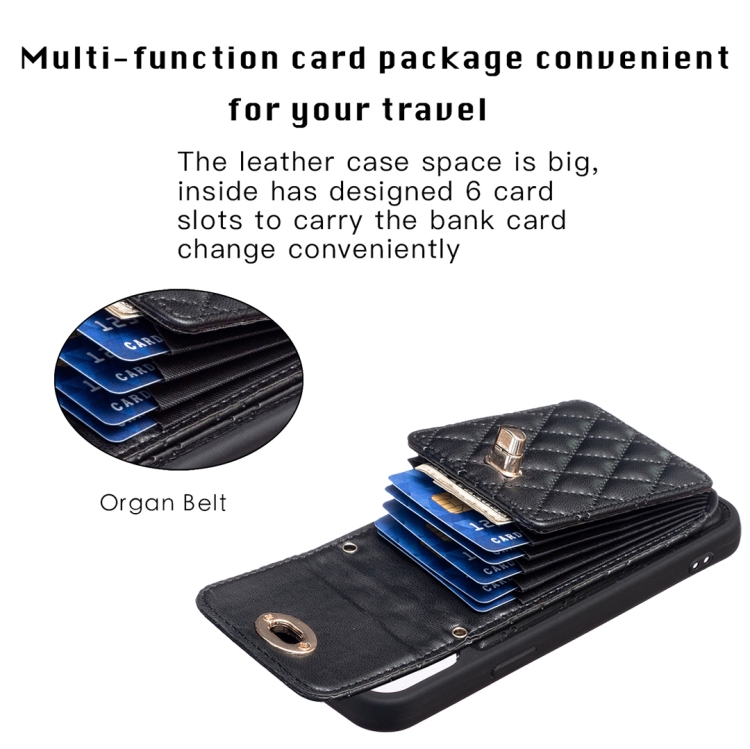 Funda para iPhone 15 Pro Vertical Wallet Rhombic Leather Phone Case (Negro)