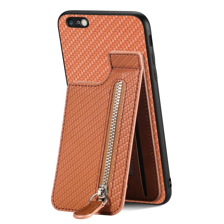 Funda de Teléfono iPhone 6 / 6S Fibra de Carbono Cremallera Vertical (Marrón)