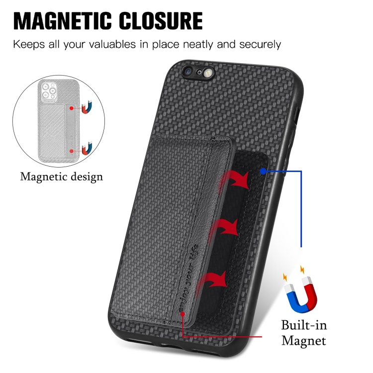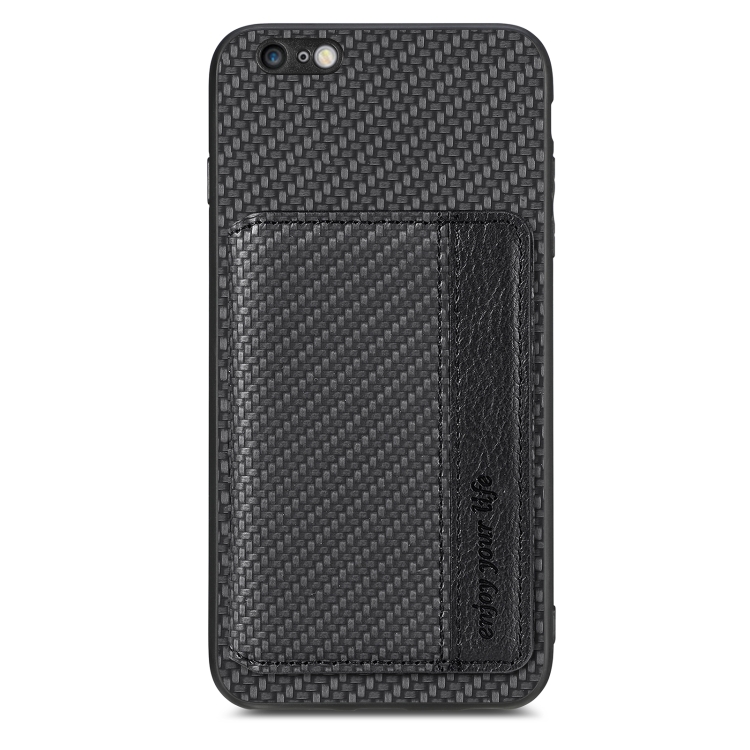 Estuche para Teléfono iPhone 6 Plus 6S Plus con Bolsa de Tarjeta Magnética Fibra de Carbono (Negro)