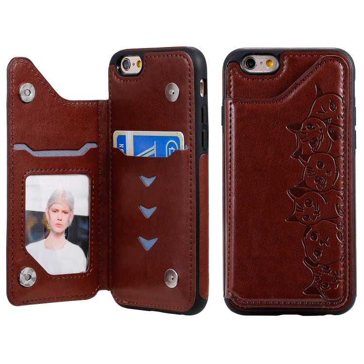 Funda Protectora para iPhone 6 Six Cats con Patrón En Relieve, Soporte, Ranuras para Tarjetas y Marco de Fotos (Marrón)