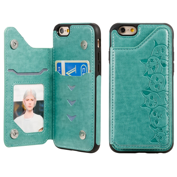 Funda Protectora Six Cats para iPhone 6 con Patrón en Relieve, Soporte, Ranuras para Tarjetas y Marco de Fotos (Verde)
