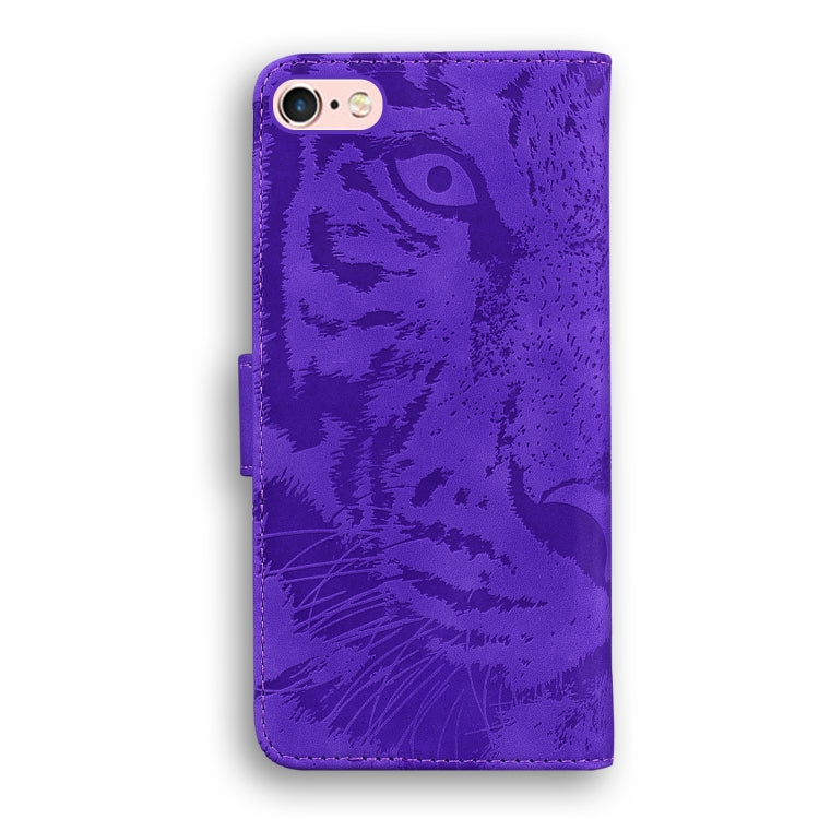 Funda de Cuero para iPhone 6S Plus y 6 Plus Tiger Embossing con Tapa Horizontal Soporte Ranuras y Billetera (Morado)