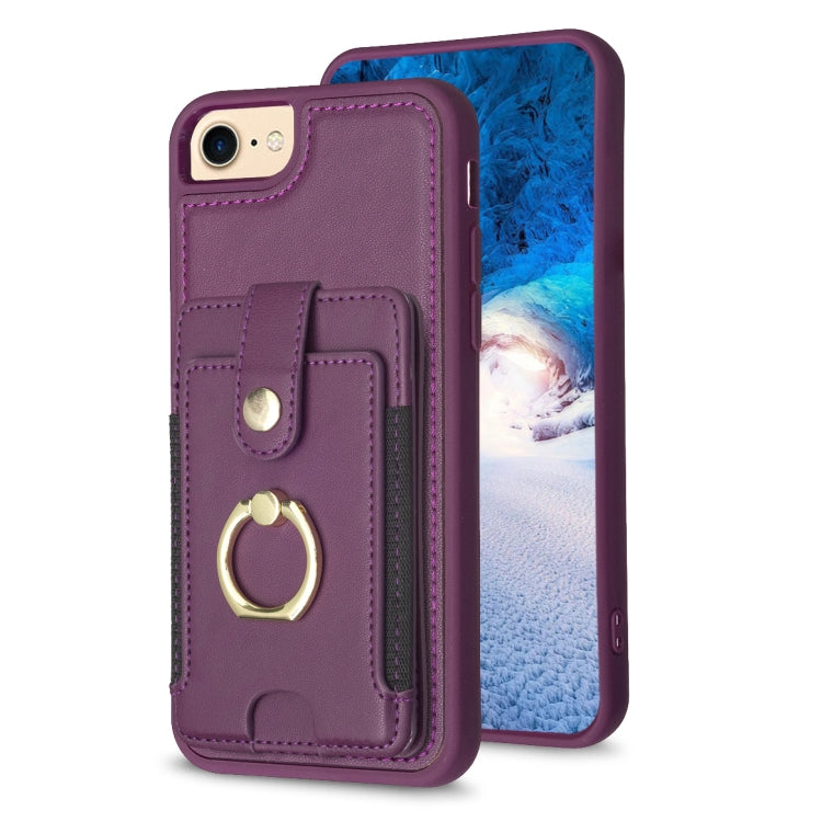 Funda para teléfono Bf27 para iPhone SE 2022/2020/8/7 con soporte para tarjeta y anillo de metal (Púrpura Oscuro)