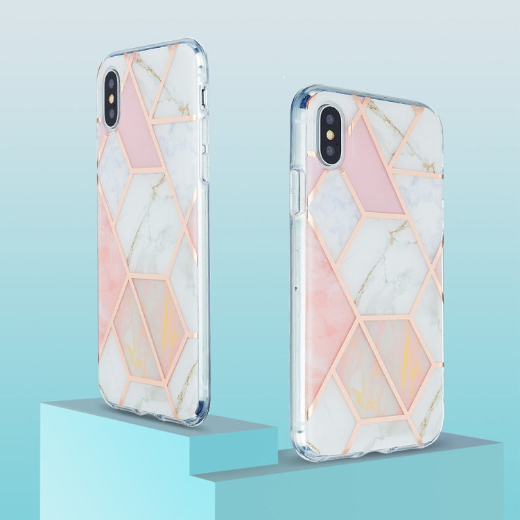 Estuche protector TPU iPhone X Xs patrón mármol galvanizado 3D (Rosa)