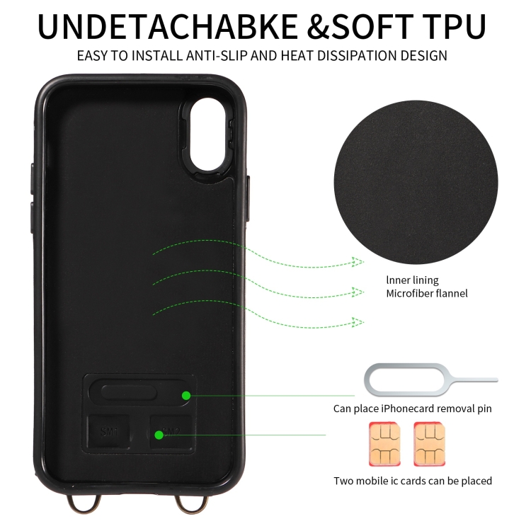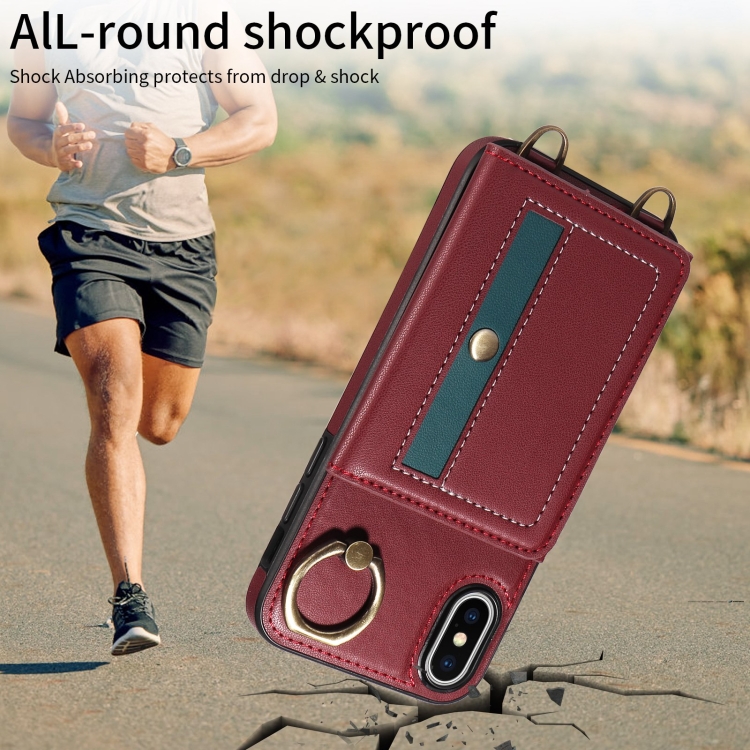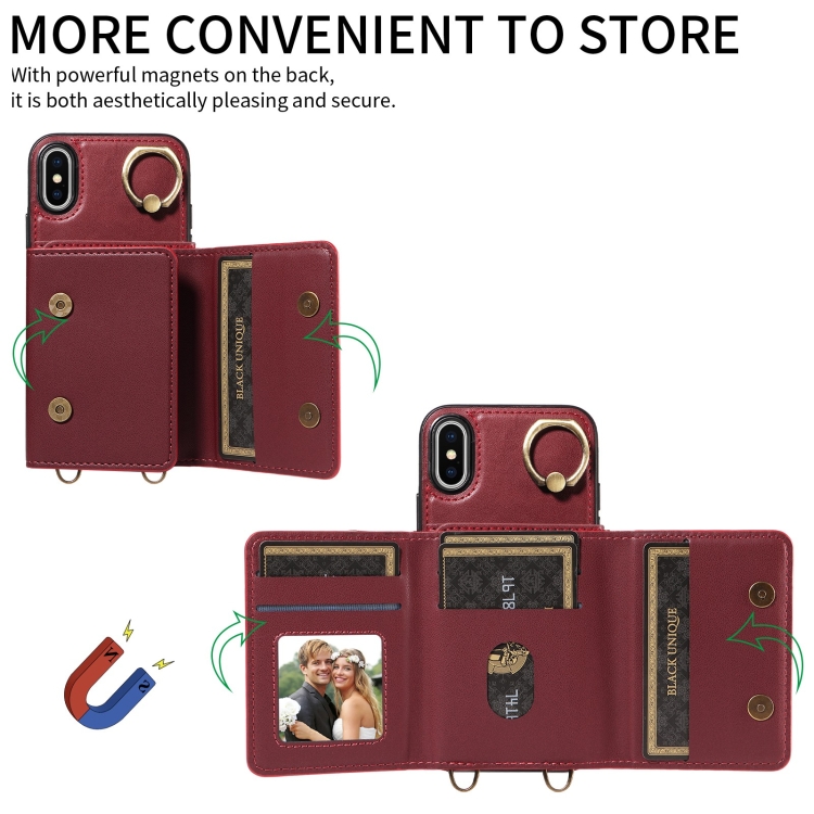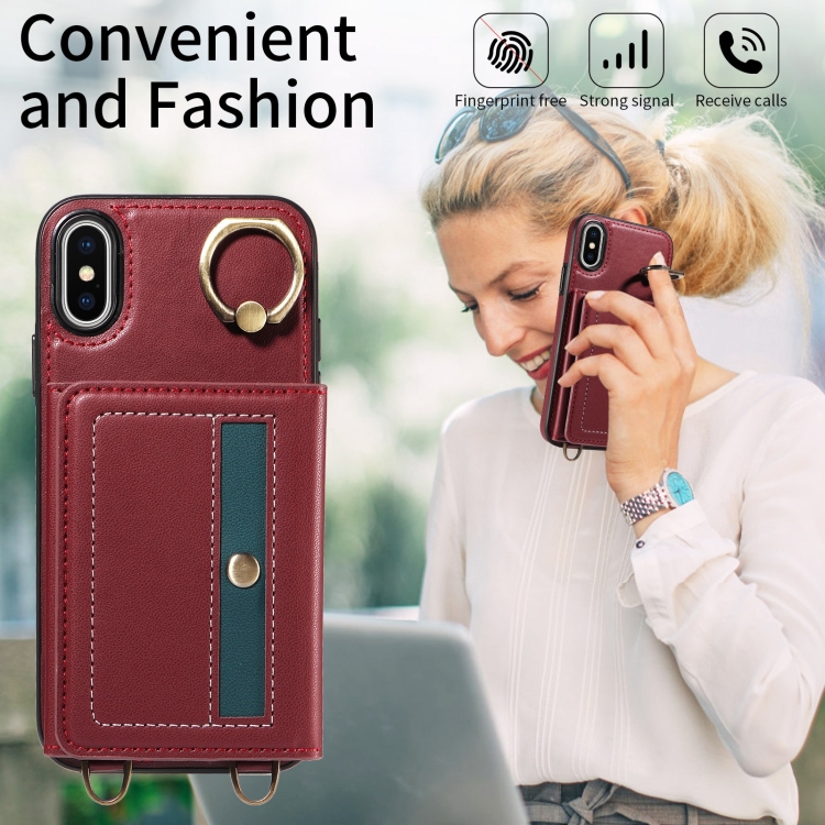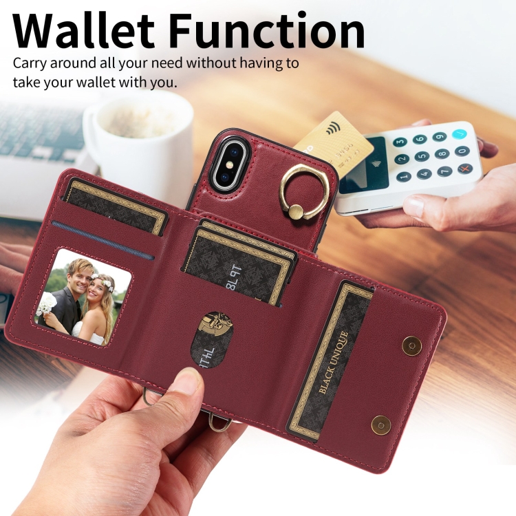 Funda de Cuero para Teléfono iPhone X Xs con Soporte para Anillo y Bolso Cruzado para Tarjetas (Rojo)