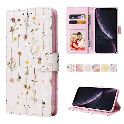 Funda de Cuero para iPhone Xr Bronceado con Pintura Rfid (Mundo de Flores Secas)