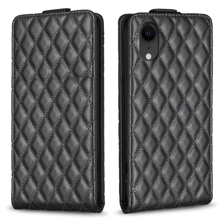 Funda para iPhone Xr Diamond Lattice de Cuero con Tapa Vertical (Negro)