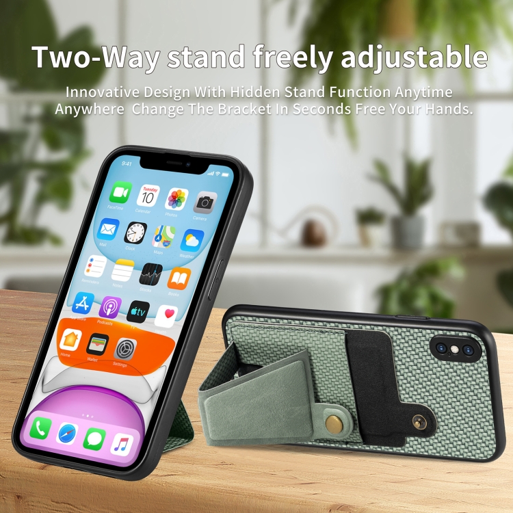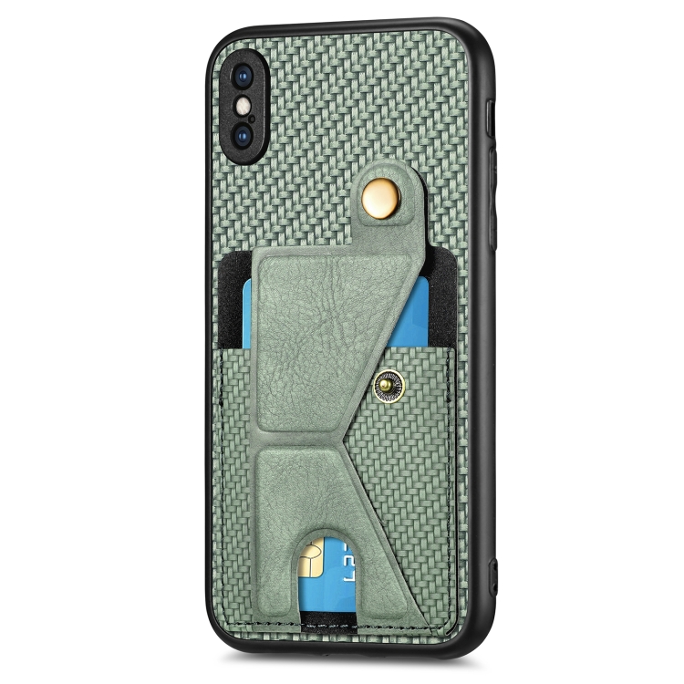 Funda para iPhone Xs Max Carbon Fiber Wallet Flip Card con Soporte en Forma de K (Verde)