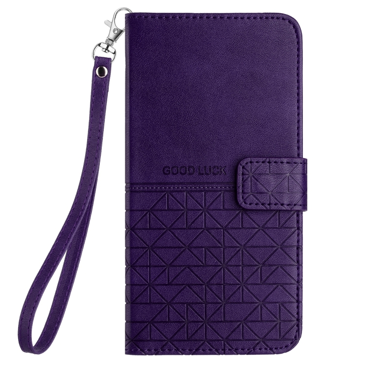 Funda para iPhone Xs Max Cuero Textura Rómbica con Cordón (Púrpura)