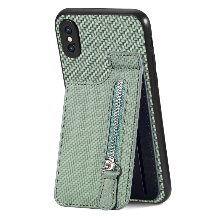 Funda de Teléfono para iPhone Xs Max con Cremallera Vertical de Fibra de Carbono (Verde)