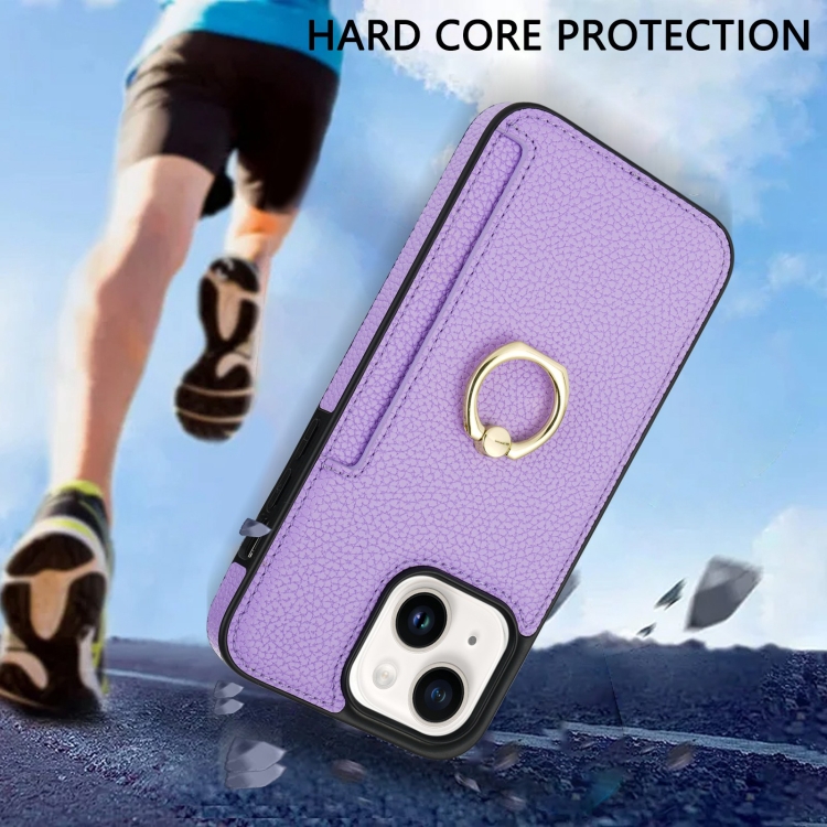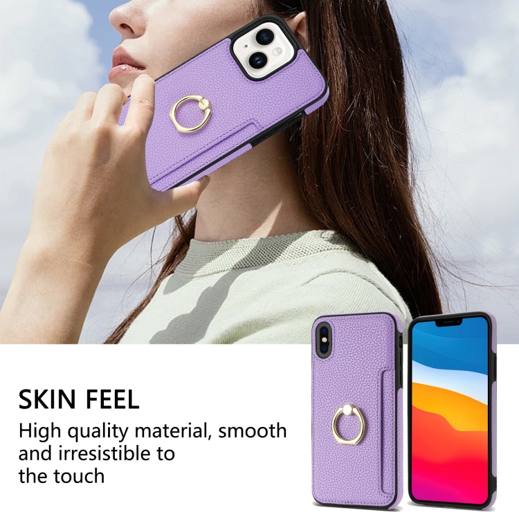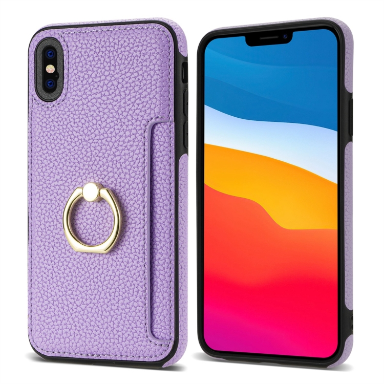 Funda Trasera para iPhone Xs Max Ring Card Litchi Cuero (Púrpura)