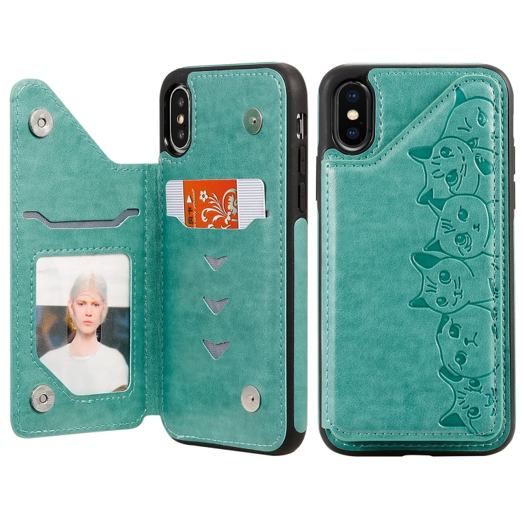 Estuche Protector para iPhone Xs Six Cats con Patrón En Relieve Soporte Ranuras para Tarjetas y Marco de Fotos (Verde)