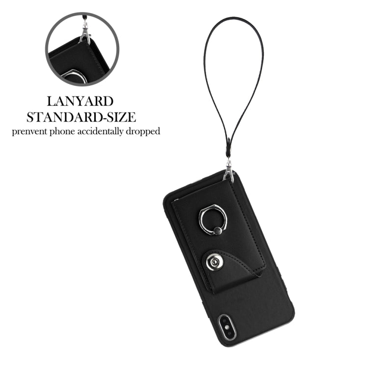 Funda para Teléfono iPhone Xs / X de PU con Soporte para Anillo y Bolsa para Tarjeta con Cordón (Negro)