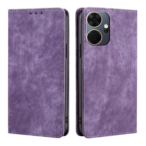 Funda de Cuero Magnética para Itel P55 + 4G con Rfid y Cepillo Antirrobo (Púrpura)