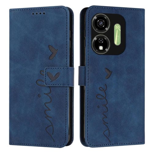 Funda para Itel P55 5G Skin Feel Heart Cuero en Relieve con Cordón Largo (Azul)