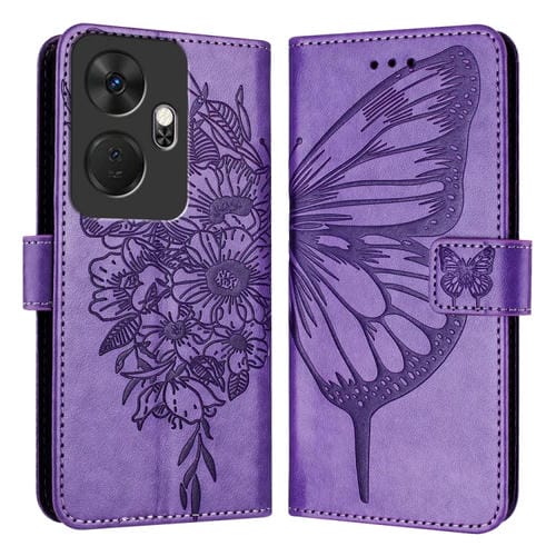 Funda de Cuero para Itel P55 con Mariposa en Relieve (Púrpura Claro)