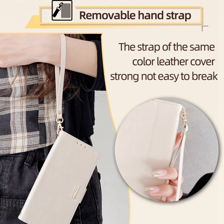 Funda de Cuero para Teléfono LG K22 con Cadena Cruzada (Blanco)