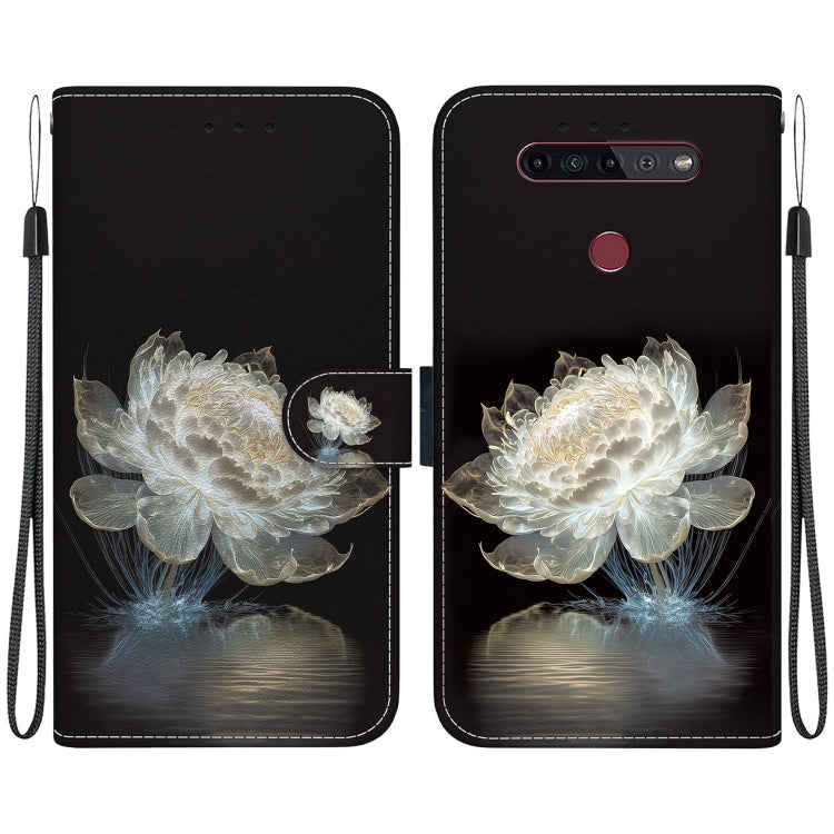 Estuche de Cuero para LG K41S / K51S con Dibujo Coloreado y Textura de Cristal (Peonía)