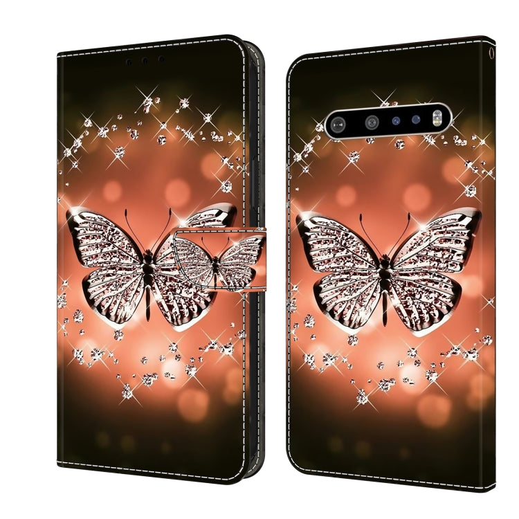 Funda Protectora de Cuero para LG V60 Thinq 5G Crystal 3D a Prueba de Golpes (Mariposa de Cristal)