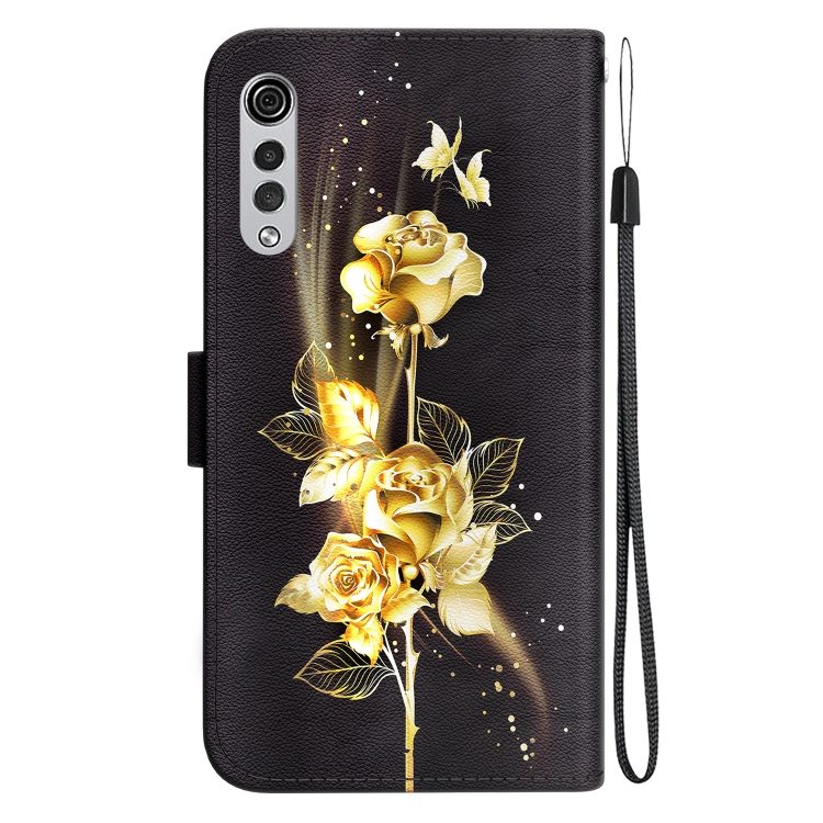 Estuche de Cuero para LG Velvet G9 con Dibujo Coloreado y Textura de Cristal (Mariposa Dorada Rosa)
