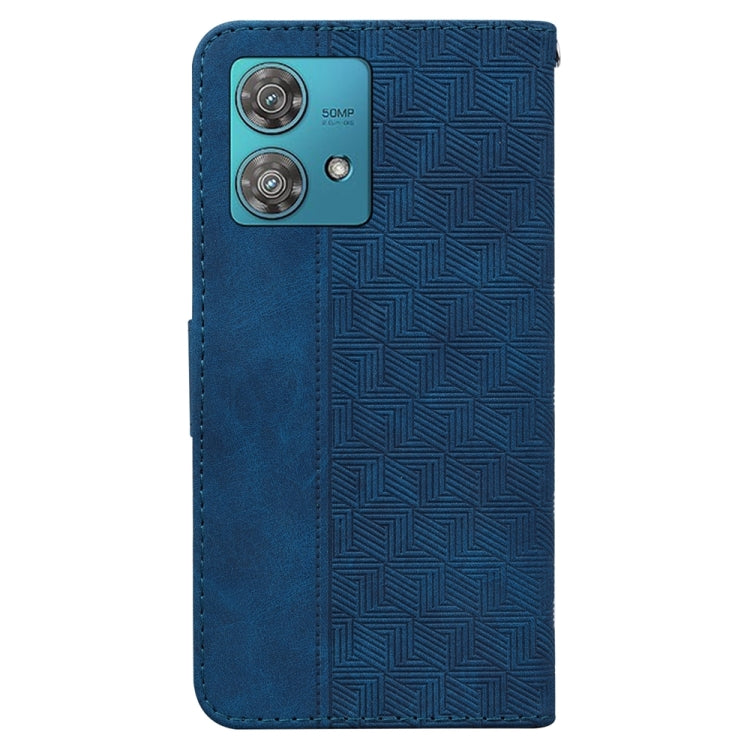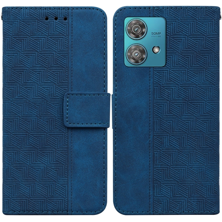 Funda de Cuero para Motorola Edge 40 Neo con Relieve Geométrico (Azul)