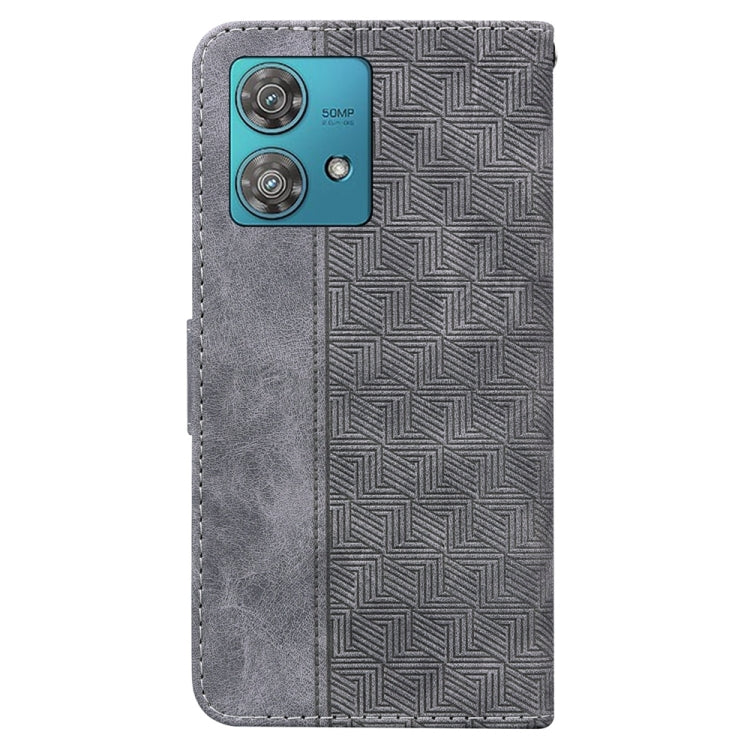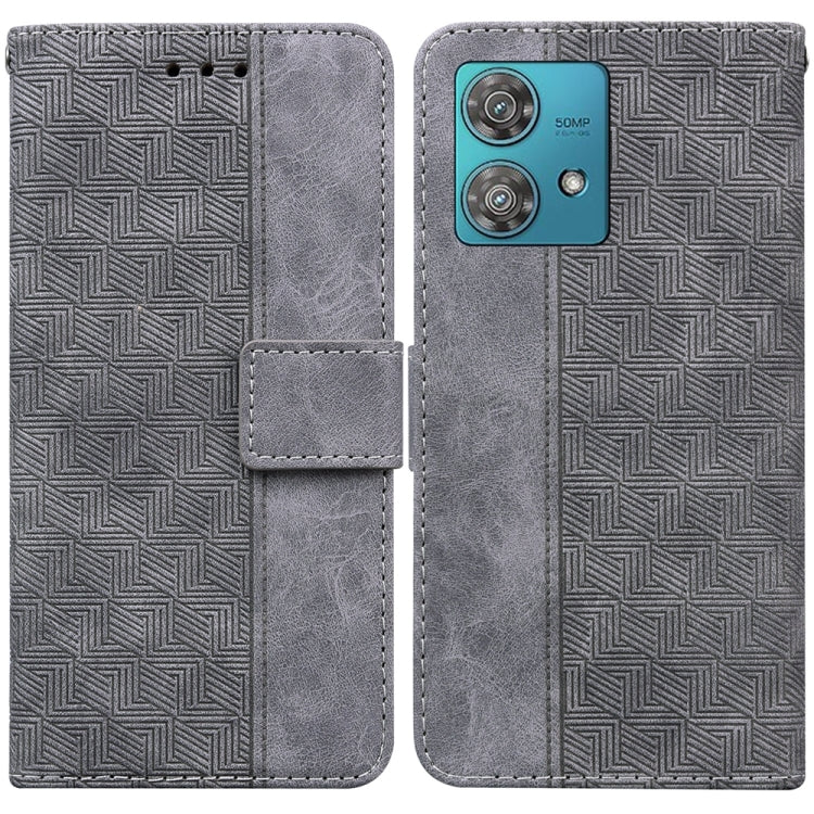 Funda de Cuero para Motorola Edge 40 Neo con Relieve Geométrico (Gris)