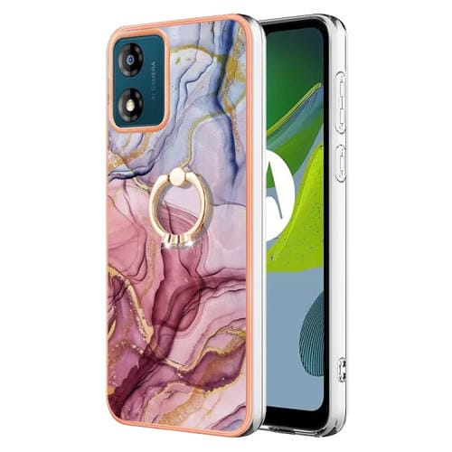 Caja para Motorola Moto E13 Imd Doble Cara Mármol Galvanizado con Anillo (Rose Red)