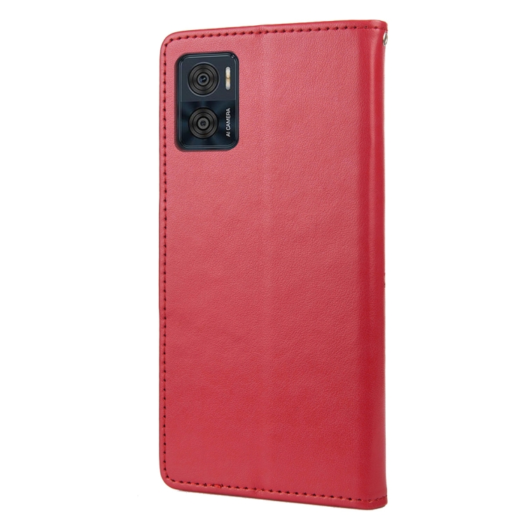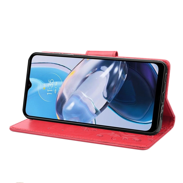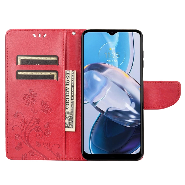 Para Motorola Moto E22 / E22i Patrón de flores de mariposa Funda de cuero con tapa para teléfono (Rojo)