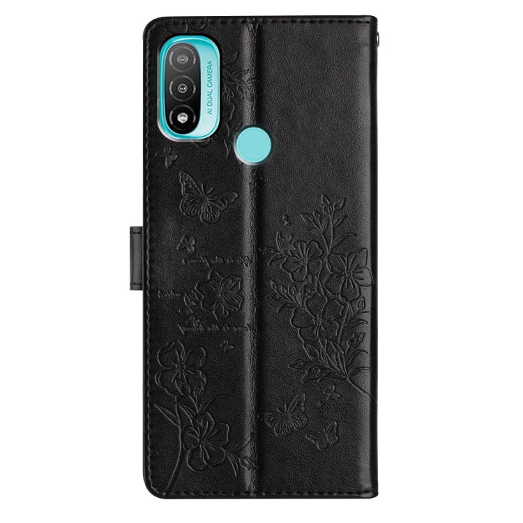 Funda de Cuero para Motorola Moto E40 con Mariposas y Flores (Negro)