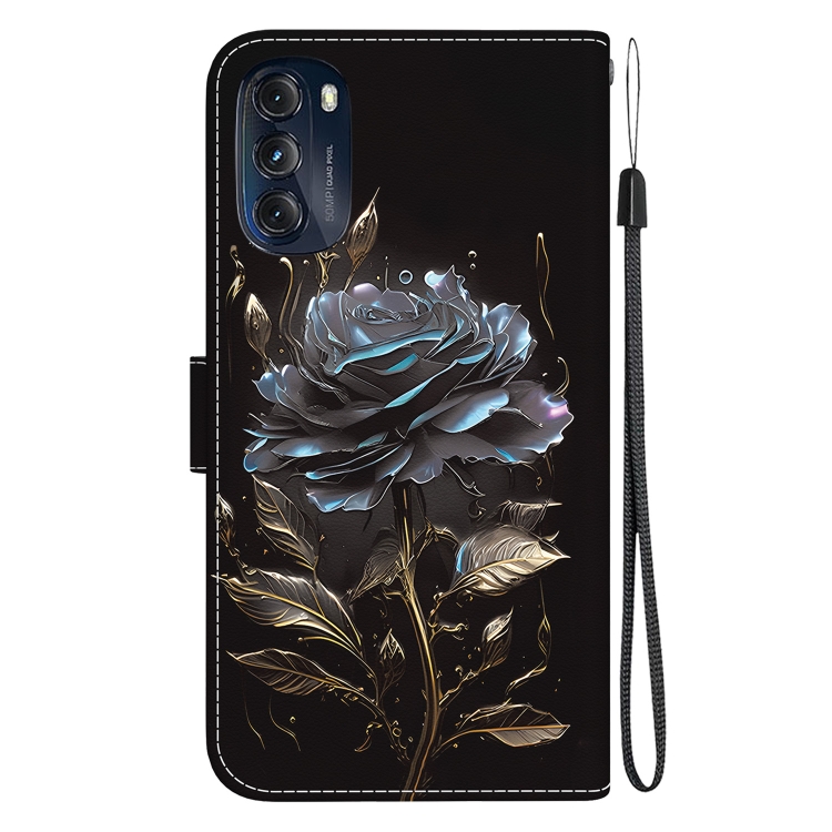 Estuche de Cuero para Motorola Moto G 2022 con Dibujo Coloreado y Textura de Cristal (Rosa Negra)