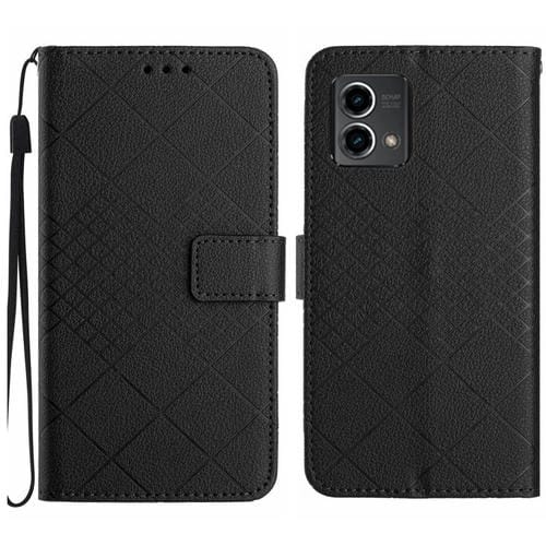 • 1x Funda de Cuero para Motorola Moto G Stylus 5G (2023) con Textura de Rejilla Rómbica (Negro)