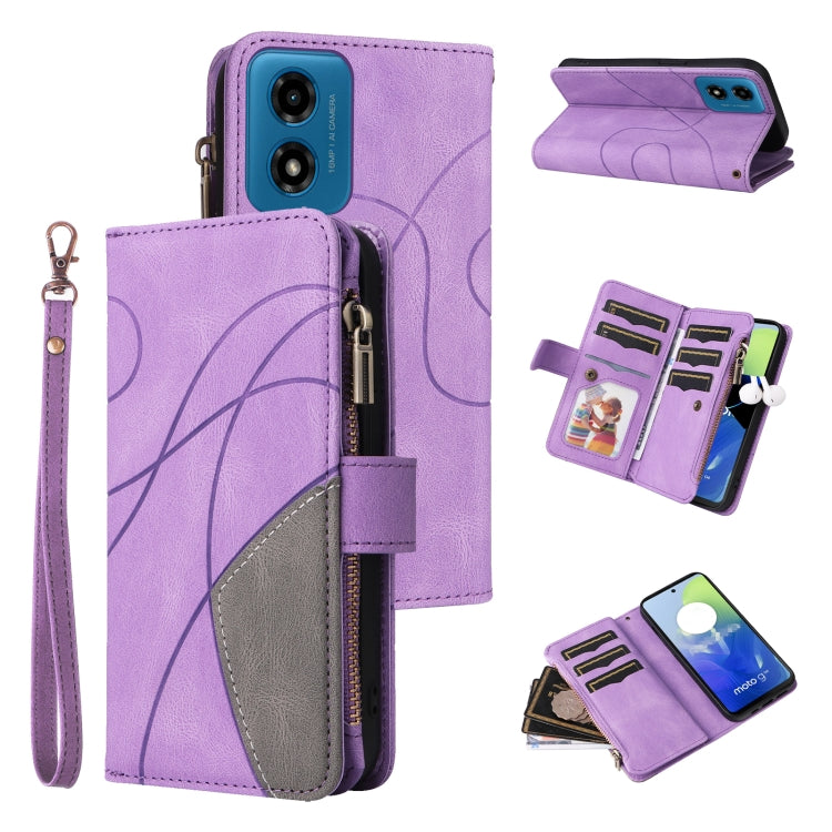 Funda Cuero para Motorola Moto G04 / G24 con Billetera, Cremallera y 9 Ranuras (Púrpura)