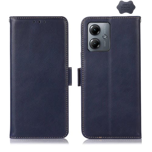 - 1x Funda Magnética para Motorola Moto G14 4G con Protección RFID Cuero Genuino (Azul)