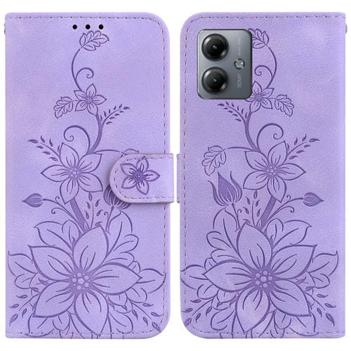 Funda de Cuero En Relieve para Motorola Moto G14 Lily para Teléfono (Púrpura)