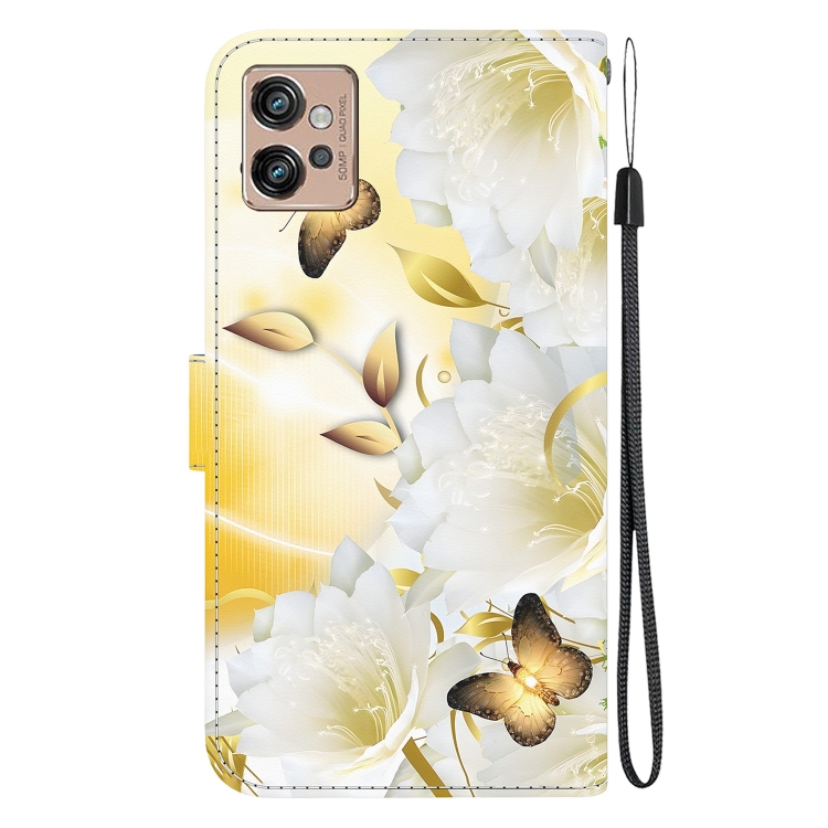 Funda de Cuero para Motorola Moto G32 con Dibujo Epiphyllum de Mariposa Dorada y Textura de Cristal