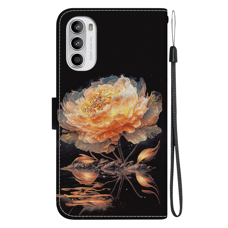 Estuche de Cuero para Motorola Moto G52J Jp con Dibujo Coloreado y Textura de Cristal (Peonía Dorada)