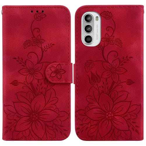 • 1x Funda de Cuero para Motorola Moto G52J Versión JP con Relieve Lily (Rojo)