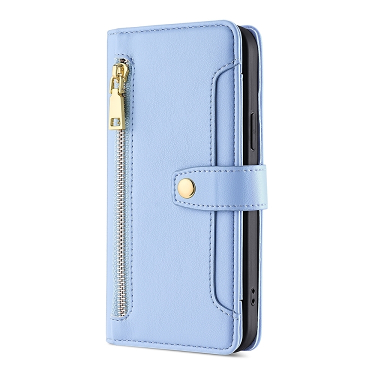 Funda de Cuero para Motorola Moto G54 5G Eu Edition Lite con Textura de Oveja y Cremallera Cruzada (Azul)