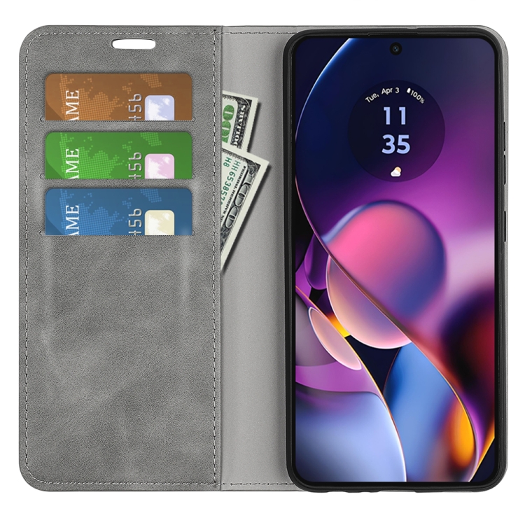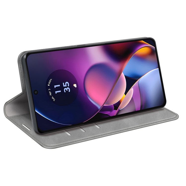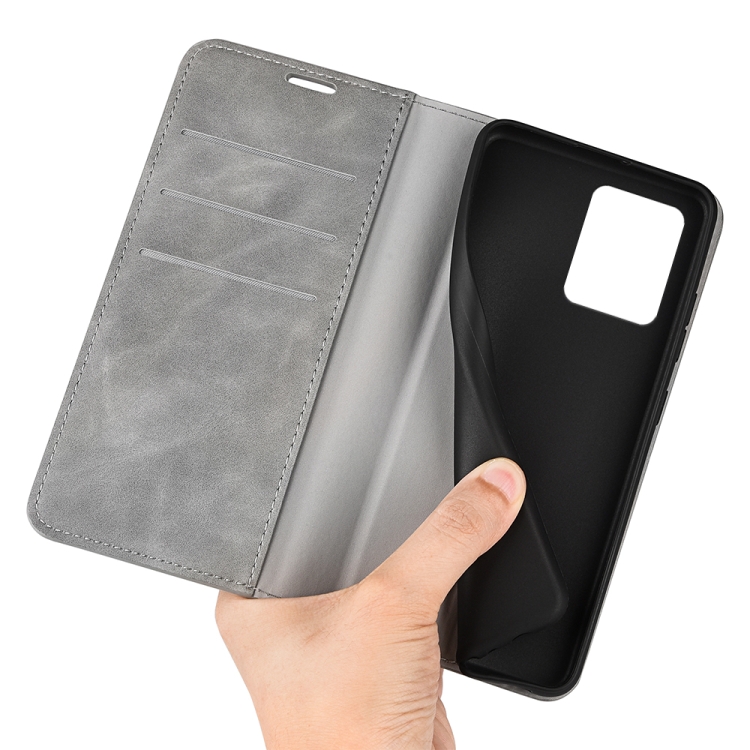 Funda de Cuero para Motorola Moto G54 con Succión Magnética de Piel Retro (Gris)