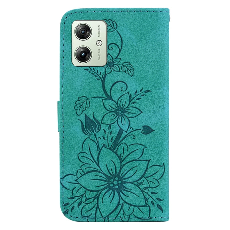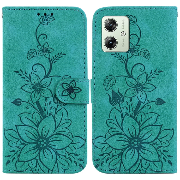 Funda de Cuero en Relieve para Motorola Moto G54 Lily (Verde)