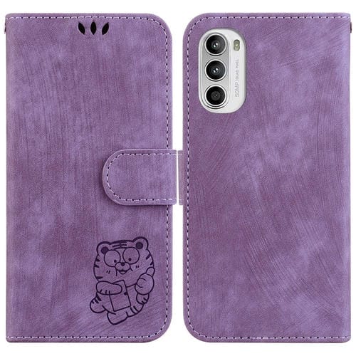 Funda para Motorola Moto G62 5G de Cuero con Relieve Little Tiger (Púrpura)