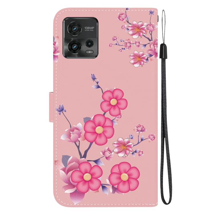 Estuche de Cuero para Motorola Moto G72 con Dibujo Coloreado y Textura de Cristal (Flores de Cerezo)